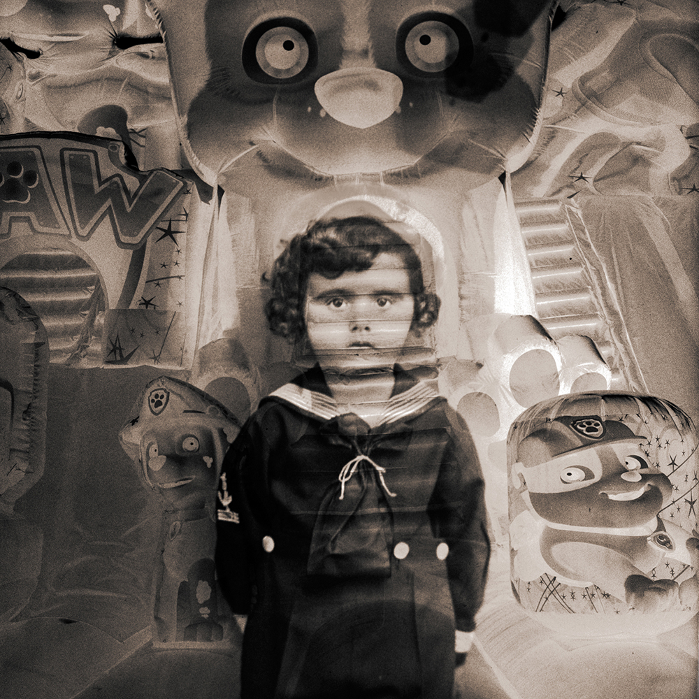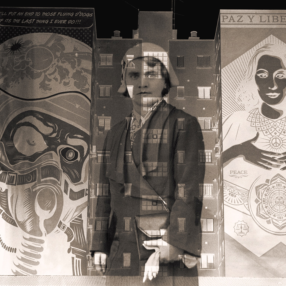 In this project, using double exposure technique I have tried to made a time capsule mixing old portraits with modern motifs. The idea was to make a kind of bridge through time, facing past and present, and create a photographic dialogue between Felix and myself. Each photograph is a story, a kind of conversation, confrontation and contemplation of past times.